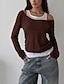Pentru femei Tricou Dublu Stratificat Culoare solidă Stilat fierbinte Clasic Manșon Lung Stil Nautic Topuri obișnuite Zilnic Sport Sfârșit de săptămână Maroniu Negru Gri Închis Primăvară Toamnă