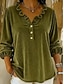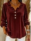 Pentru femei Tricou Tee Top Nasturi Culoare solidă Stilat Clasic Casual Manșon Lung În V Topuri obișnuite Zilnic Ieșire Sfârșit de săptămână Negru Verde Militar Roșu-aprins Maro Kaki Primăvară Toamnă