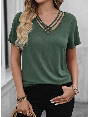 Pentru femei Tricou Tee Top Decupaj în cruce Simplu Modă Stilat Clasic Manșon scurt În V Topuri obișnuite Zilnic Ieșire Sfârșit de săptămână Albastru piscină Negru Bleumarin Mov Fucsia Vară Primăvară