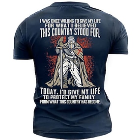 Tricou bărbătesc cu imprimeu de războinic medieval, cruce roșie, despicată, negru, alb, grafic, mânecă scurtă, guler rotund, top retro, haine de designer, S, M, L, XL, XXL, XXXL