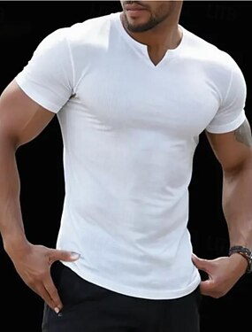 Bărbați Tricou Tricouri Manșon scurt În V Primavara vara Simplu Șic Stradă Îmbrăcăminte sportivă Birou Fitness Sală de Fitness Negru Alb Roșu-aprins Top tricou pentru bărbați