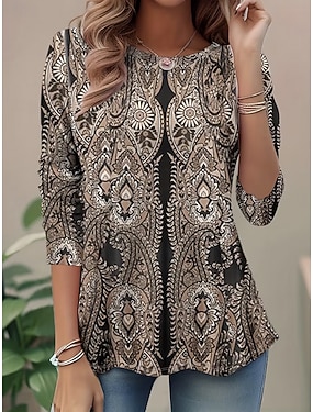 Pentru femei Tricou Imprimeu Grafic Imprimeu Paisley Elegant Modă Casual Manșon Lung Stil Nautic Rotund Topuri lungi Zilnic Sfârșit de săptămână Maro Vară Primăvară Toamnă