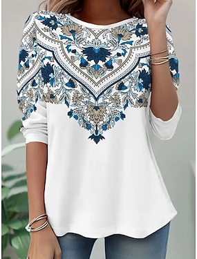 Pentru femei Tricou Imprimeu Floral Grafic Plante Epocă Stilat Clasic Manșon Lung Stil Nautic Topuri obișnuite Zilnic Sfârșit de săptămână Albastru piscină Roz Îmbujorat Mov Trifoi Primăvară Toamnă