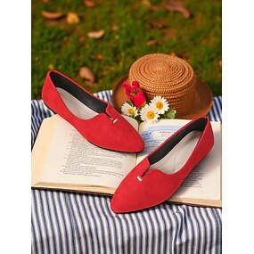 Pantofi sport roșii cu vârful ascuțit din piele întoarsă artificială pentru femei – pantofi comozi de picnic pentru după-amiezele de toamnă, cititul în grădină și întâlnirile la cafea în aer liber