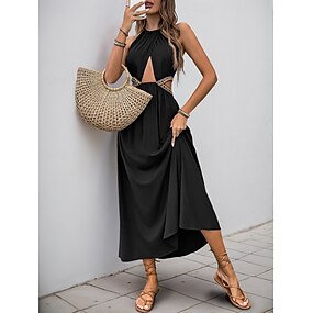 Pentru femei Rochie Maxi Rochie neagra Rochie de absolvire Rochie casual Rochie de Cocktail Vacanță Casual Zilnic Vacanță Concediu Fit regulat Simplu Fără manșon În V Negru Vară