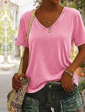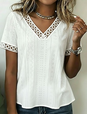 Pentru femei Varful ochiului Tricou Pointelle Tricou Tricouri Texturat Elegant Stilat Clasic Manșon scurt În V Topuri lungi Casual Plajă Alb Galben Roz Îmbujorat Vară Primăvară