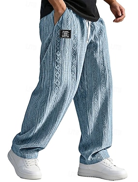Bărbați Pantaloni Pantaloni largi Pantaloni casual Pantaloni texturați Jacquard Talie elastică Picior drept Simplu Respirabil Lungime totală Casual Zilnic În aer liber Vacanță Modă Negru Alb Inelastic