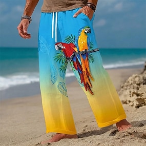 Bărbați Animal Copac de cocos Papagal Pantaloni Pantaloni casual Pantaloni largi Talie medie Hawaiană În aer liber Vacanță Costum de plajă Talie elastică cu șnur Pantaloni din material textil cu
