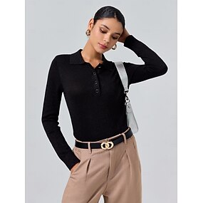 Pulover polo tricotat pentru femei, culoare uni, cu guler polo, mânecă lungă, minimalist, amestec de lână, formal, pentru lucru, zi de zi, primăvară și toamnă