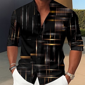 Bărbați Gradiant Γραμμή Cămașă Camașă cu nasturi Cămașă cu guler ridicat Manșon Lung Casual În aer liber Vacanță Zilnic Primăvară Toamnă Guler mandarin Guler Tunică Imprimare 3D Cămașă de in