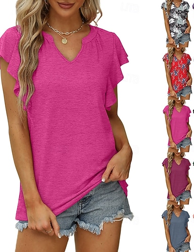 Pentru femei Tricou Topuri de vară Tricouri Grafic Plante Stilat Clasic Manșon scurt În V Topuri lungi Zilnic Îmbrăcăminte de seară de petrecere Sport Albastru piscină Gri-albastru roșu-purpuriu