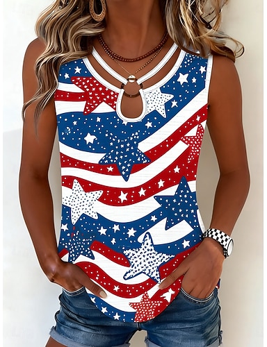 Ziua Independenței Americane Pentru femei Varful ochiului Tunică Bluză Capsă Grafic Steag Stilat Clasic Fără manșon Asimetric Rotund Topuri obișnuite Casual Zilnic Albastru piscină Roșu-aprins Roșu
