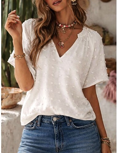 Pentru femei Bluză Culoare solidă Stilat Casual Manșon scurt În V Topuri obișnuite Zilnic Alb Trifoi Caisă Vară Primăvară