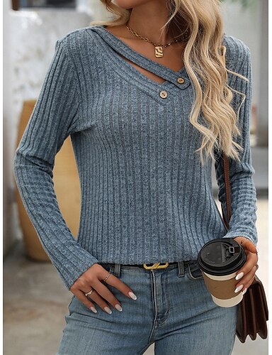 Pentru femei Bluză Nasturi Culoare solidă Stilat Casual Manșon Lung În V Topuri obișnuite Zilnic Albastru piscină Negru Roșu-aprins Mov Caisă Primăvară Toamnă Iarnă
