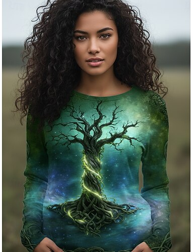 Paște Pentru femei Tunică Imprimeu Floral Grafic Plante Epocă Modă Stilat Manșon Lung Pătrat Topuri obișnuite Zilnic Alb Verde Deschis Roz Îmbujorat Primăvară Toamnă