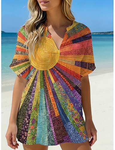 Pentru femei Cămașă Cămașă casual Cămașă de plajă Bluză Imprimeu Floral Grafic Boemia Stilat Modern Manșon scurt În V Topuri obișnuite Zilnic Concediu Ieșire Albastru piscină Galben Verde Deschis