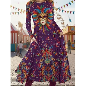Pentru femei Rochii Midi Rochie casual Rochie leagăn Elegant Modă Zilnic În aer liber Sfârșit de săptămână Fit regulat Grafic Manșon Lung Stil Nautic Mov Deschis Mov Fucsia Liliac Primăvară Toamn