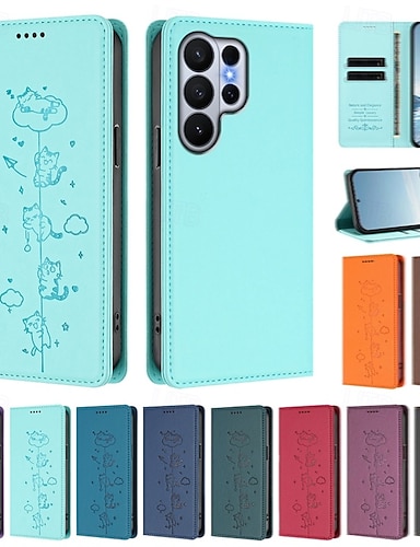 telefon Maska Pentru Samsung Galaxy S26 Ultra Plus S25 Edge S24 S23 FE S22 Plus Ultra Portofel Card Anti Șoc Pisica TPU PU piele