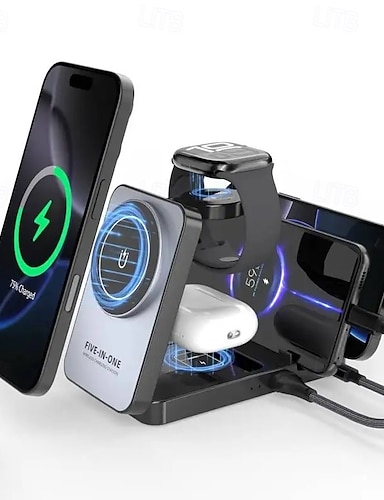 Încărcător wireless pentru iPhone 17, 16, 15, 14, 13, 12, 11 x 8, stație de încărcare 5 în 1 pentru Apple Watch 10/9/8/7/6/5/4/3/2/SE/Ultra/Ultra
