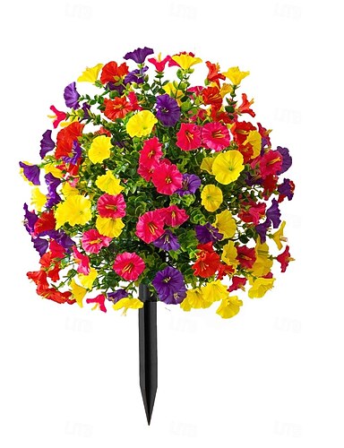 Țepușă de flori artificiale de 20 de inch, decor exterior, glorie de dimineață, țăruși de grădină multicolori pentru curte &gazon, plastic rezistent care nu se decolorează, decorațiune pentru toate