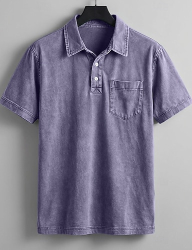 Bărbați Tricouri polo Cămașă de spălat cu acid 100% bumbac Casual Concediu Rever Manșon scurt Modă De Bază Simplu Epocă Îndurerat Vară Primăvară Toate Sezoanele Fit regulat Negru Verde Deschis Roz
