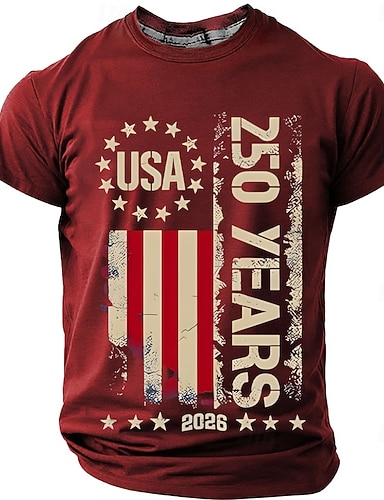 4 iulie 2026, a 250-a aniversare Bărbați Culoare solidă Drapelul SUA american Tricou Manșon scurt Tricou Tipărire 3D Stil Nautic Cămașă Vintage Retro Patriotic Zilnic Festival Albastru piscină Negru