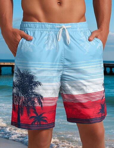 Bărbați Copac de cocos Dungi Plante tropicale Boxeri înot Costume de baie Pantaloni scurți de baie Pantaloni Scurti Talie medie Hawaiană Vacanta la plaja Buzunare laterale Căptușeală din plasă Talie