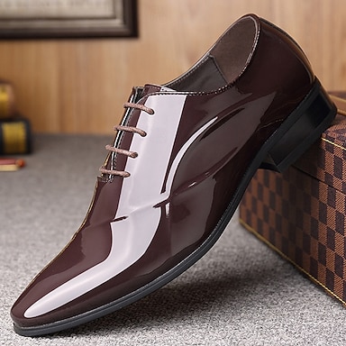 Pantofi eleganți bărbătești din piele lăcuită maro închis, cu șireturi - încălțăminte elegantă și formală pentru întâlniri de afaceri și evenimente elegante
