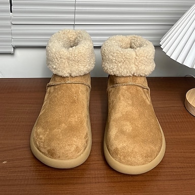 Ghete bărbătești din piele de oaie maro deschis – confortabile și călduroase, cu căptușeală moale din blană, perfecte pentru ținute casual și confort pe vreme rece