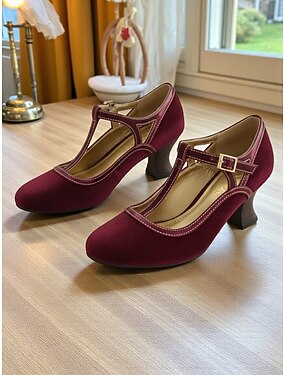 Tocuri mary jane din piele maro și visiniu de inspirație vintage pentru femei, perfecte pentru serviciu și ocazii speciale