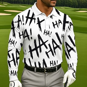 Bărbați Scrisă Polo Manșon Lung Tricouri de polo Rever Îmbrăcăminte sportivă Casual Îmbrăcăminte Atletică Purtare Zilnică Imprimare 3D Nasturi Primăvară Toamnă Iarnă Negru Alb