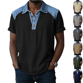 Bărbați Tricouri polo Camasa de blugi Casual Muncă Rever Manșon scurt De Bază Modern Bloc Culoare Peteci Nasturi Primavara vara Albastru piscină Negru Alb Bleumarin Maro Trifoi Tricouri polo