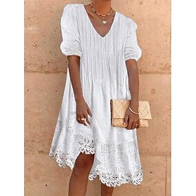 Pentru femei Rochii Midi Rochie de schimb Rochie de vară Casual Zilnic Fit regulat Simplu Manșon Lung În V Alb Vară Primăvară Toamnă