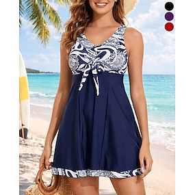 Pentru femei Costume de Baie Rochii de baie Tăiat mare Costum de baie Zdrobit Vacanță Epocă Ombre Grafic În V Fără manșon Costume de baie