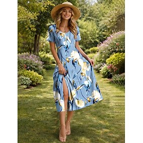 Pentru femei Rochii Midi Rochii Tricou Rochie A line Rochie de vară Vacanță Casual Plajă Fit regulat Floral Grafic Manșon scurt Stil Nautic Albastru piscină Roz Îmbujorat Trifoi Gri Vară Primăvară
