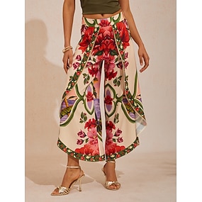 Pentru femei Pantaloni cu picioare largi Lungime totală Satin Picior Larg Imprimeu Micro-elastic Vacanță Pantaloni Vacanță Trifoi Primavara vara S M L