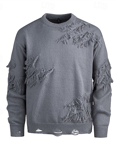 Bărbați Pulover pulover Pulover tricotat Striat Tricotat Topuri obișnuite Tricotat ripped Simplu Guler Pe Gât Modă De Bază Vacanță Purtare Zilnică Îmbrăcăminte Toamnă Iarnă Negru Bej M L XL