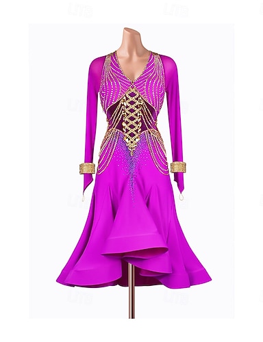 dans salsa rochie de dans latin ciucuri strasuri antrenament de performanță pentru femei mânecă lungă tul spandex mare