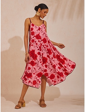 Rochie maxi din satin cu imprimeu floral în culori contrastante pentru vacanță