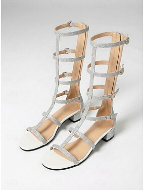 Sandale gladiator până la genunchi pentru femei – pantofi cu toc jos și barete în stil roman, sandale elegante de vară pentru vacanțe în aer liber, stațiuni și călătorii