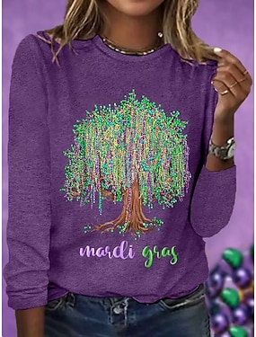 Mardi Gras Pentru femei Tricou Imprimeu Grafic Geometric Gradiant Elegant Stilat Clasic Manșon Lung În V Topuri obișnuite Zilnic Ieșire Sfârșit de săptămână Galben Mov Trifoi Vară Primăvară Toamnă