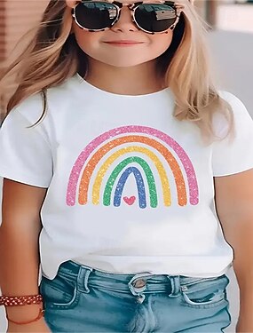100% Bumbac Copii Fete Negru Alb Curcubeu Tricou Stil Nautic Manșon scurt În aer liber Vacanță Zilnic Clasic Casual Imprimeu Vară