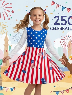 Girls ' 3D Grafic Steag Rochie Manșon Lung Tipărire 3D Primăvară Toamnă Zilnic Vacanță Petrecere Casual Prințesă Frumoasa Copii 4-12 ani Rochie casual Rochie A line Lungime Genunchi Fit regulat