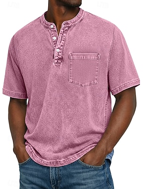 Bărbați Cămașă Henley Cămașă de spălat cu acid 100% bumbac Tricou Tricou Manșon scurt Culoare solida Retro / vintage Casual Buzunar Stil Vintage Spălat Henley Casual Vară Primăvară Toamnă Negru Roz