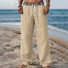 Bărbați Pantaloni de in Pantaloni Pantaloni de vară Pantaloni de plajă Peteci Talie elastică Picior drept Geometric Confort Respirabil Lungime totală Casual Zilnic Concediu Vacanță Modă Alb