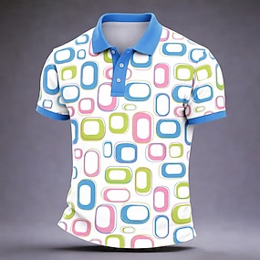Bărbați Geometric Neon Tricouri polo Cămașă de golf Manșon scurt Tricouri de polo Cămăși cu guler Casual Îmbrăcăminte de vacanță Îmbrăcăminte formală Îmbrăcăminte de festival Nasturi Imprimare 3D Alb