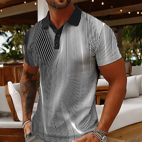 Bărbați Geometică Polo Manșon scurt Tricouri de polo Cămăși cu guler Casual Stradă Îmbrăcăminte Atletică Purtare Zilnică Imprimare 3D Nasturi Vară Albastru piscină Roz Îmbujorat Mov