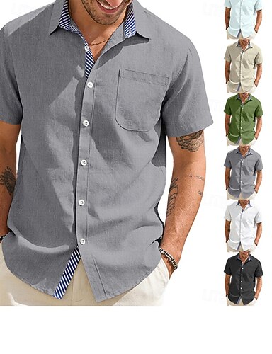 Bărbați Cămașă Cămașă de in Cămașă de vară Costum de plajă Culoare solidă Casual Vacanță Albastru piscină Bleumarin Kaki Gri Manșon scurt Guler Cămașă Vară Primăvară Îmbrăcăminte