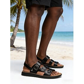 Sandale bărbătești cu barete din piele ecologică, croială reglabilă, ideale pentru vacanțe la plajă și plimbări casual