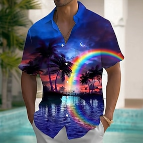 Bărbați Curcubeu Copac de cocos Peisaj Cămașă hawaiană Camașă cu nasturi Cămașă Aloha Manșon scurt Hawaiană Vacanță Vară Primăvară Răsfrânt Imprimare 3D cămăși cu guler Un buzunar frontal Albastru